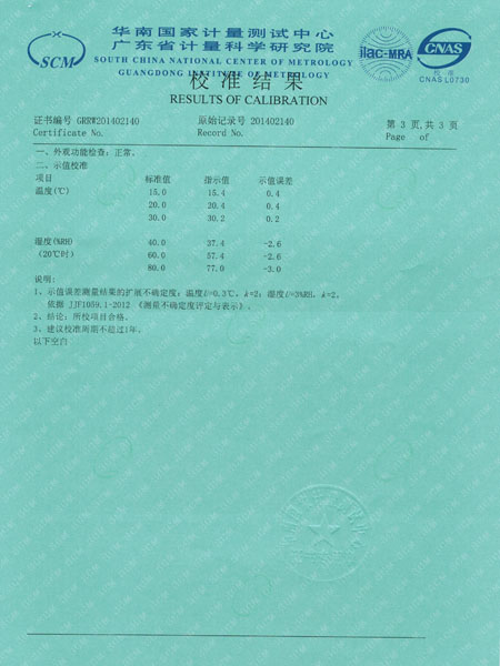檢測儀表校準證書