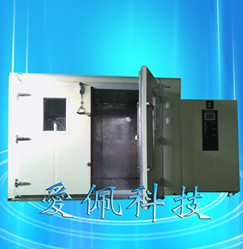 • 步入式恒溫恒濕房為業界提供大型零件、半成品、成品的溫濕度換將測試,如:計算機終端機、汽車零組件。恒溫恒濕主要由控制面板、配電盤、保溫庫板、送風機、加熱器、加濕器、冷凍機組合而成,主要規格可區分為6種標準室內尺寸及24種不同條件測試規范。