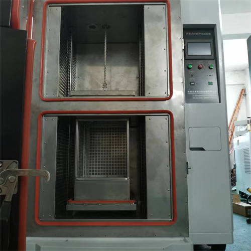 試驗方式把產品擺放在吊籃測試區,二箱移動式冷熱沖擊,安全的氣壓驅動測試物上下來回沖擊。